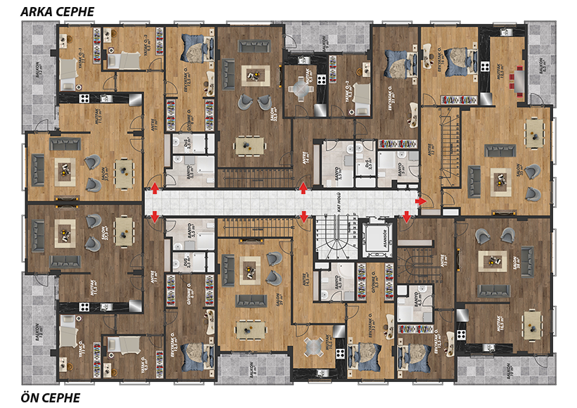 Proje, 2 bloktan oluşmakta olup, toplamda 36 daire ve 4 dükkan yer almaktadır. Daire tipleri;